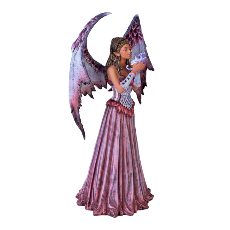 • Figurine of an elegant purple fairy gazing lovingly at a baby dragon