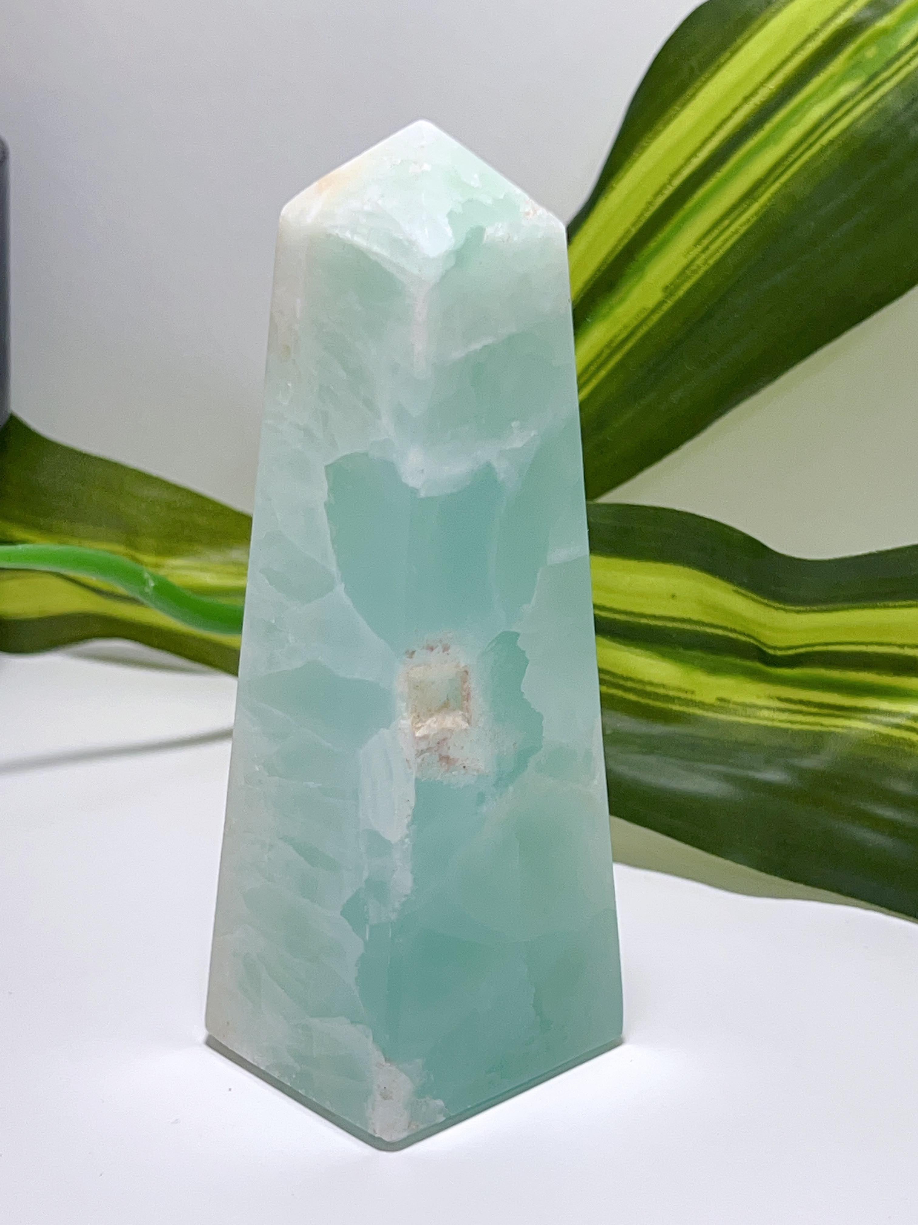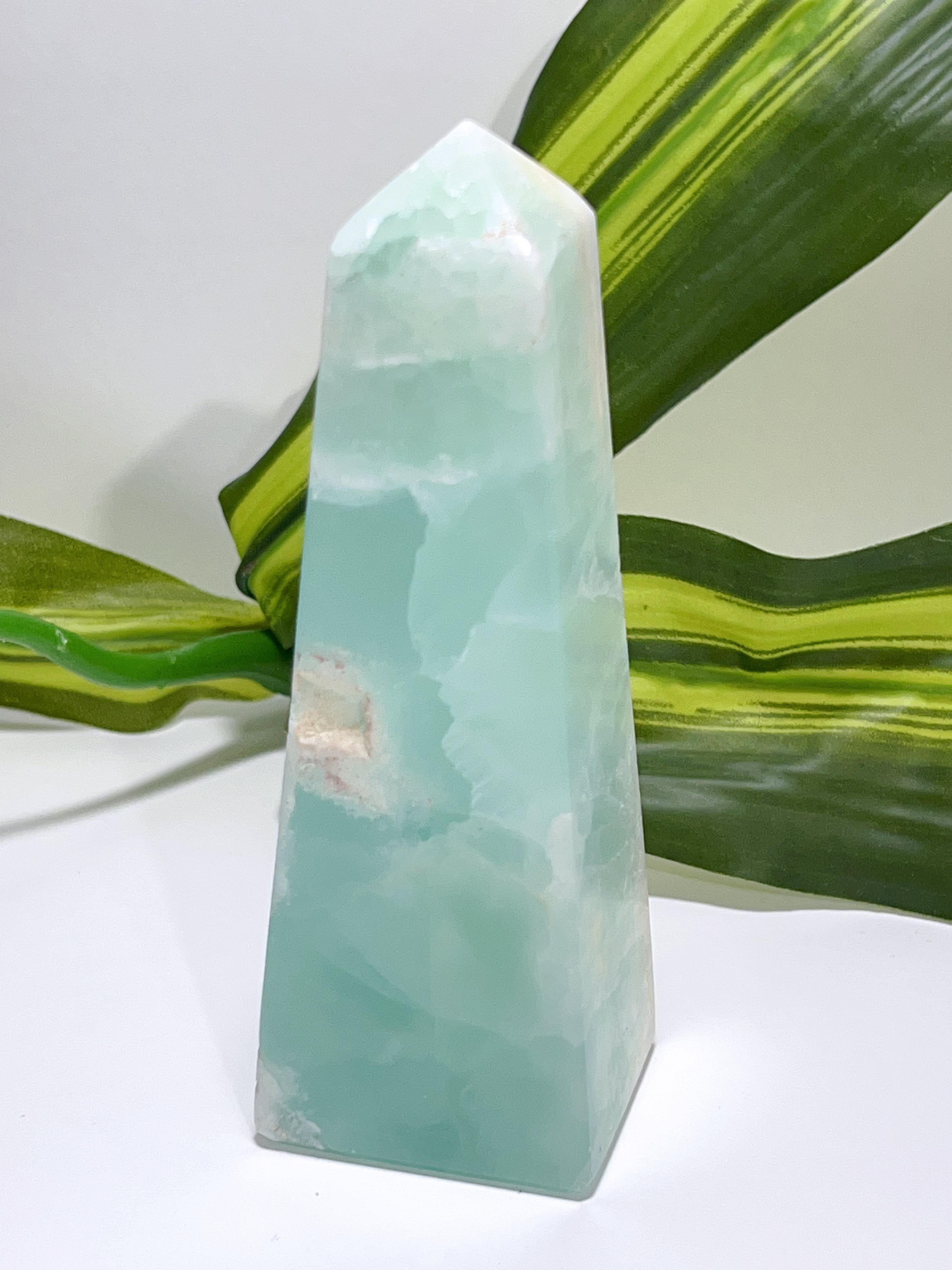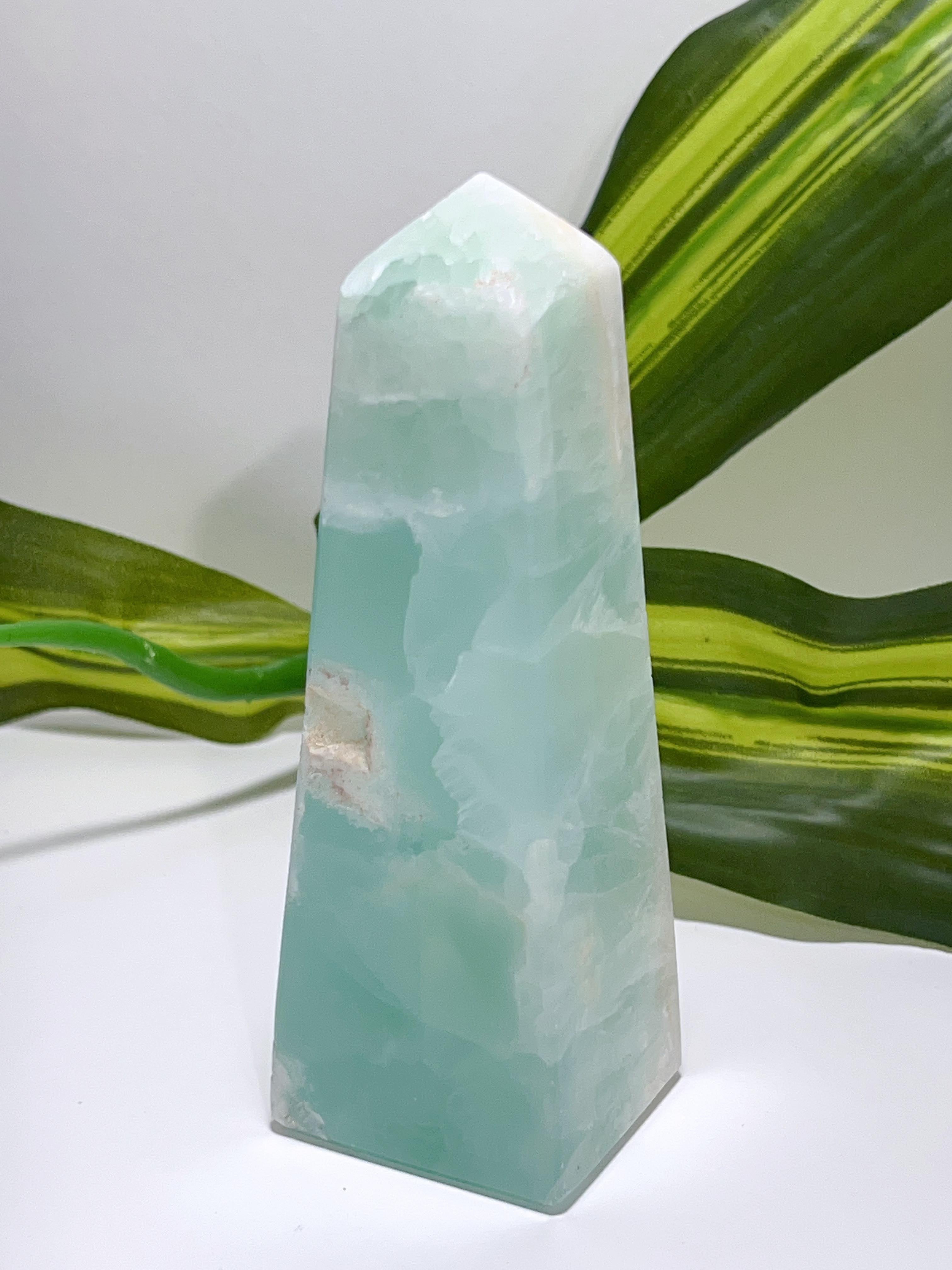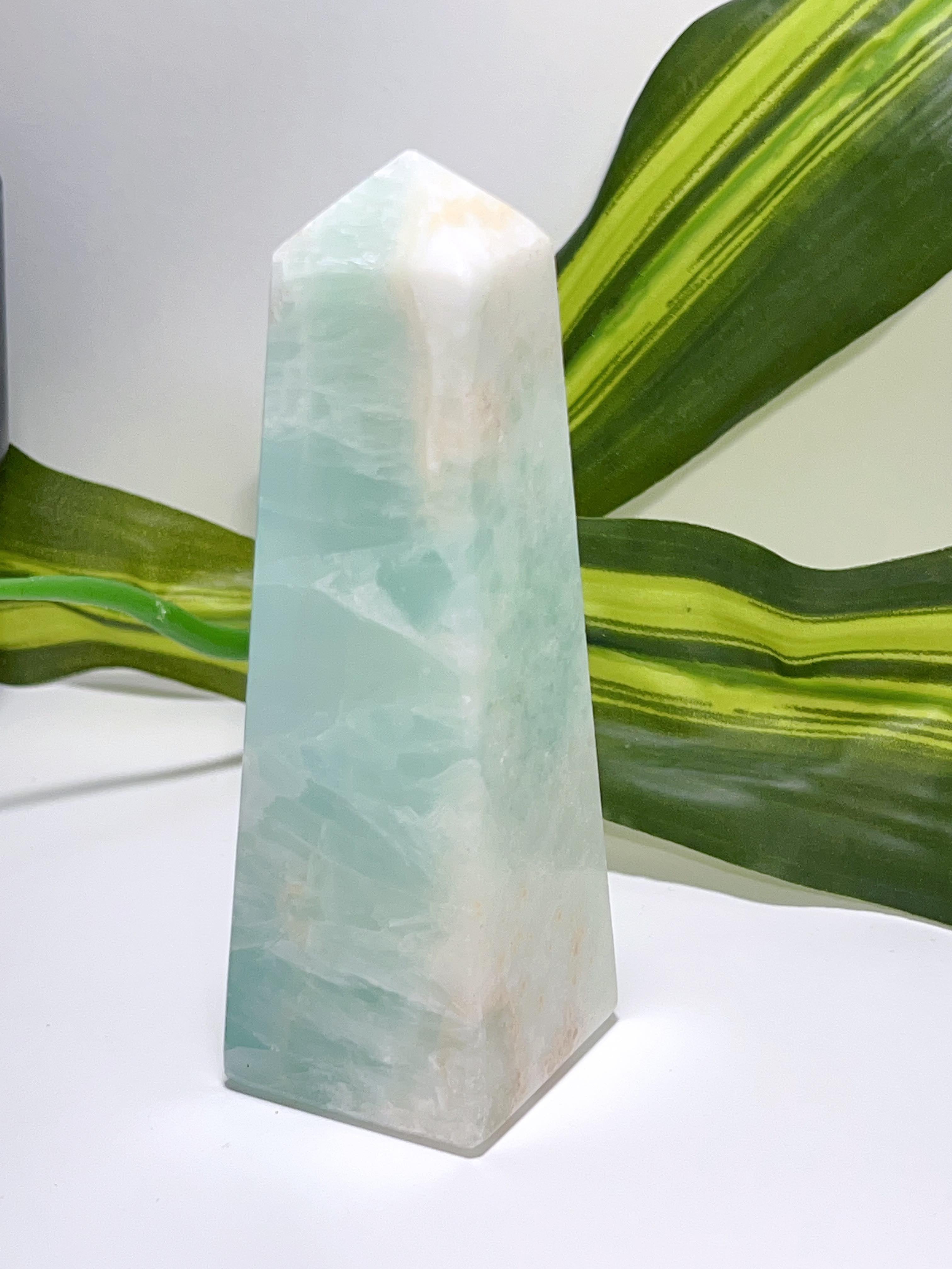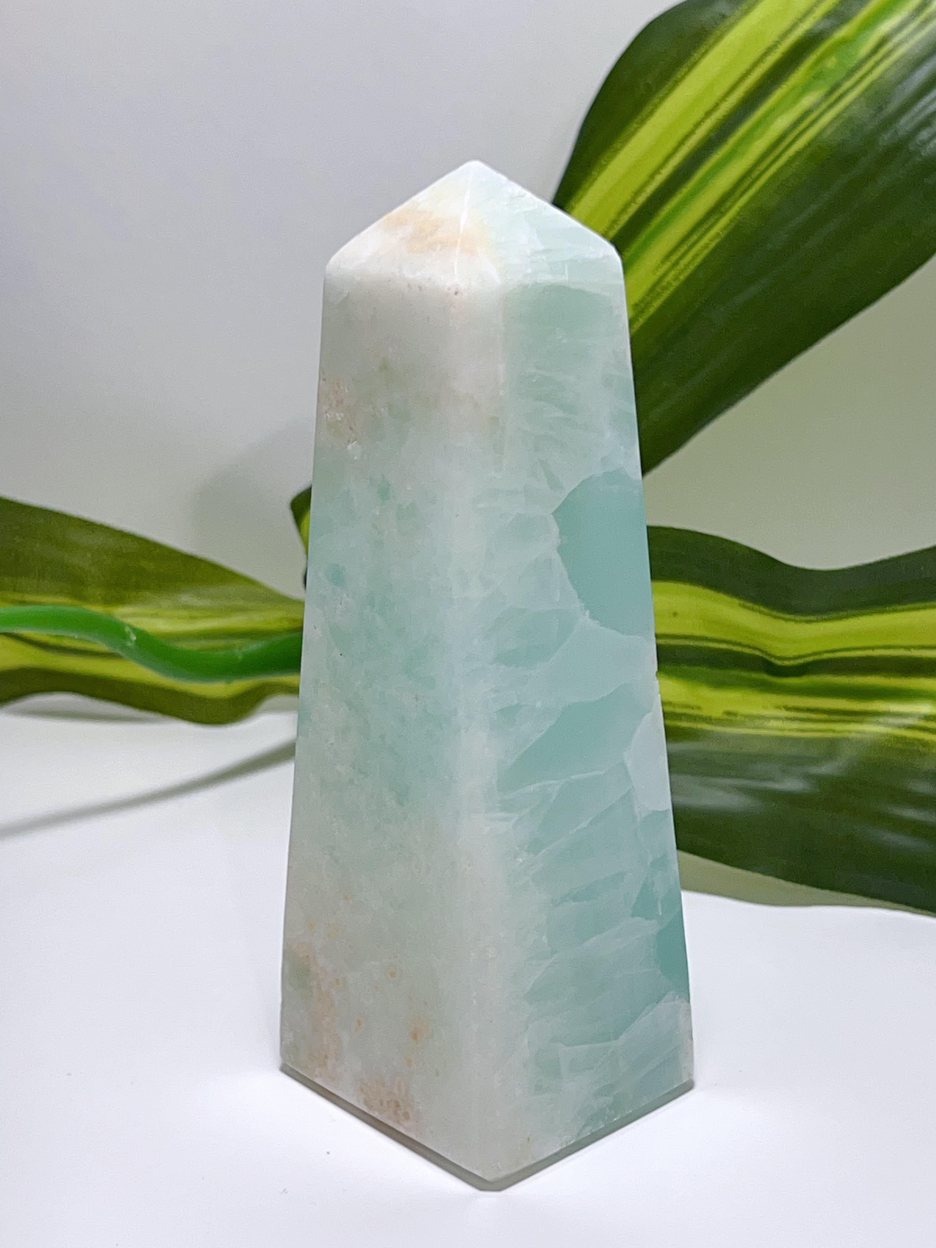 SKU: 137 Categories: All Crystals, Clearance, Towers🌀Points Tag: Aqua Caribbean Calcite Tower 342G
