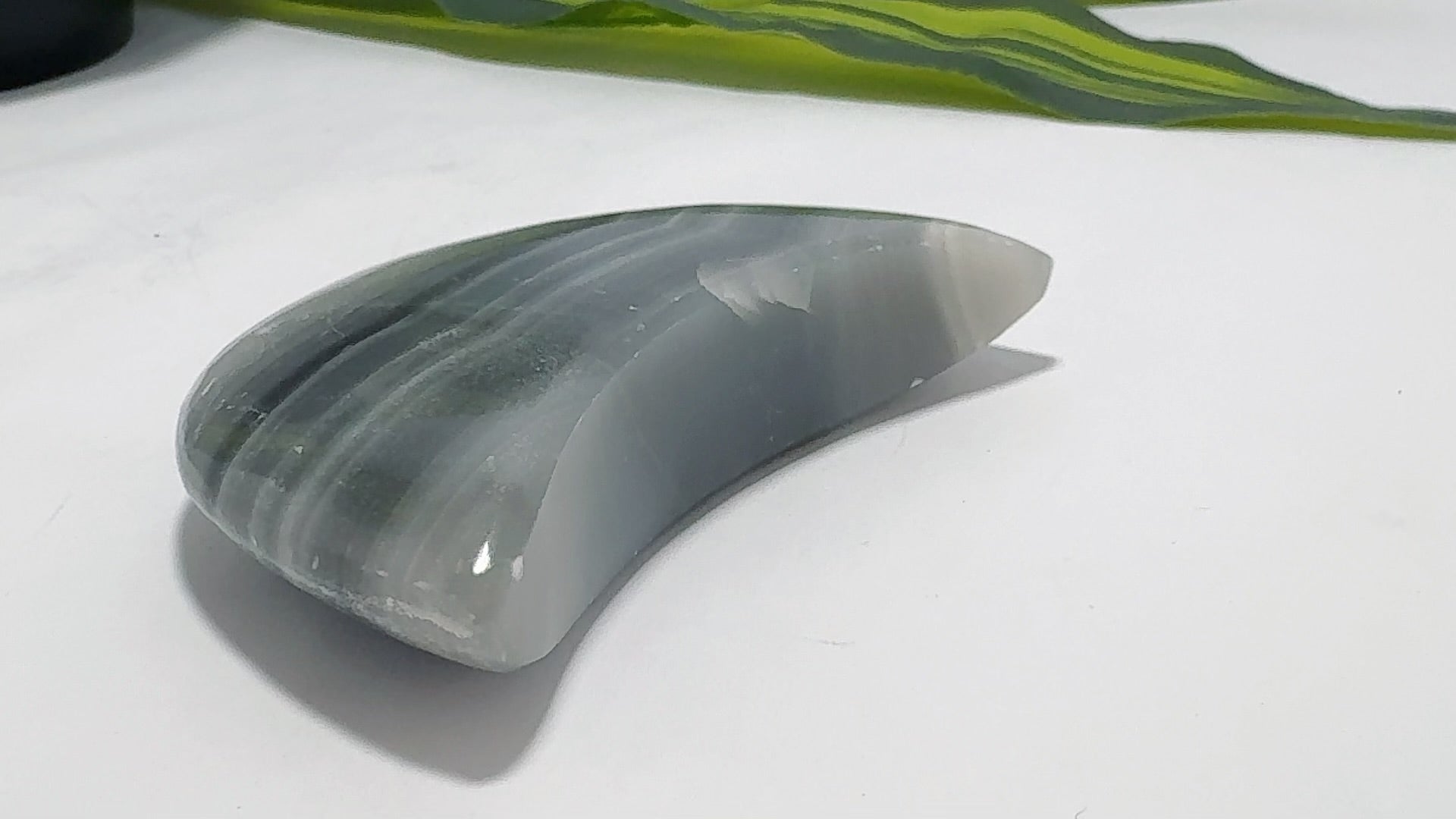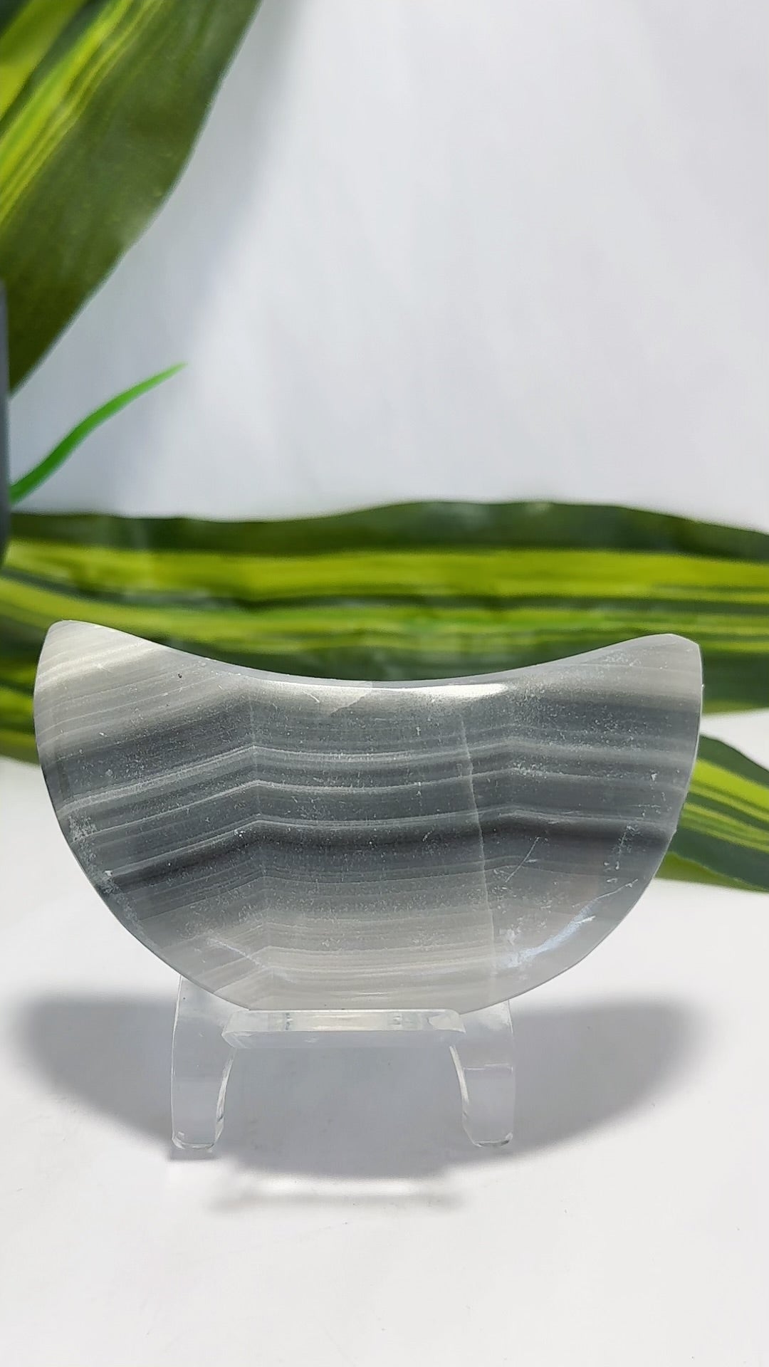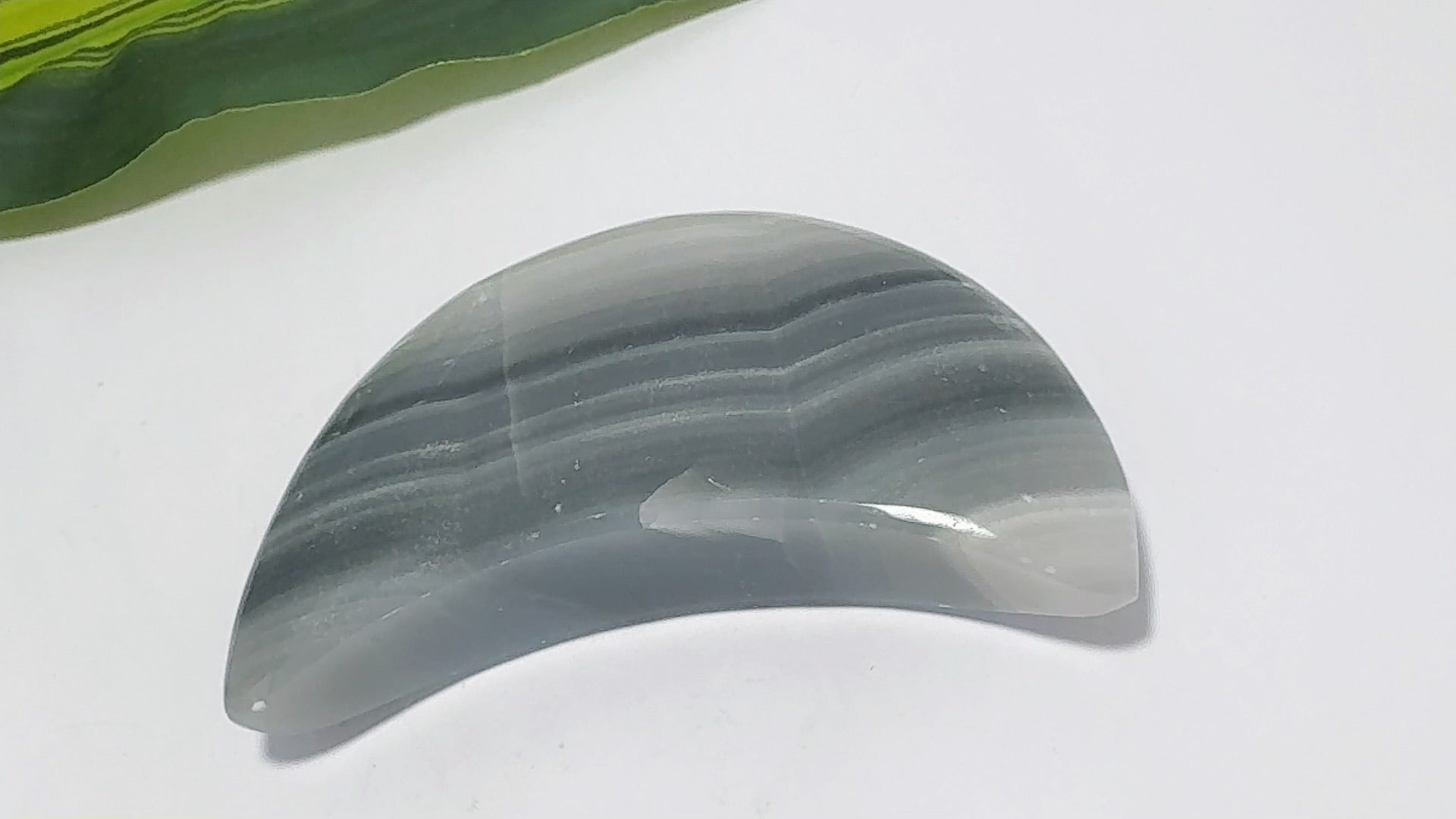 Category: Crystal Carvings Tag: Black Banded Onyx Moon 138g