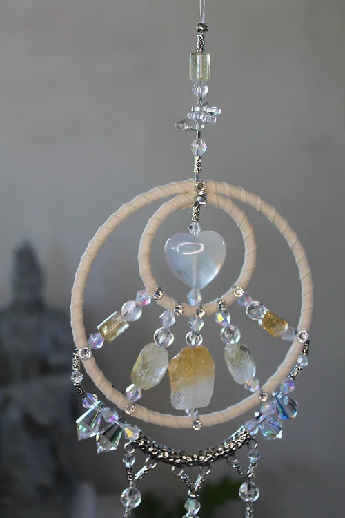 Home Dreamcatcher🌀Chimes Citrine & Clear Quartz Mandala Hanger app 45cm