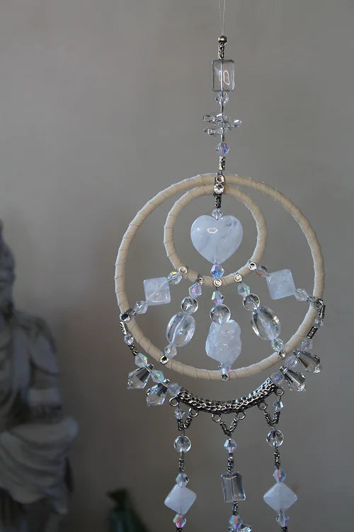 Category: Dreamcatcher🌀Chimes Tag: Clear & Cloudy Quartz Heart Mandala Hanger
