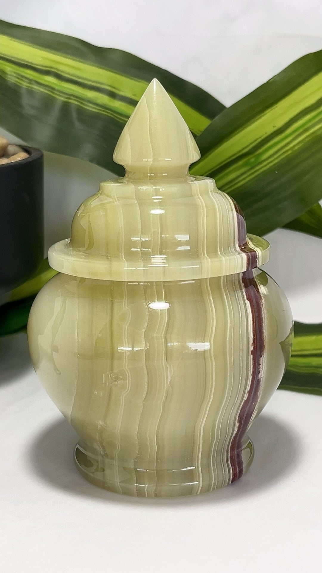 Green Banded Onyx Jar with Lid