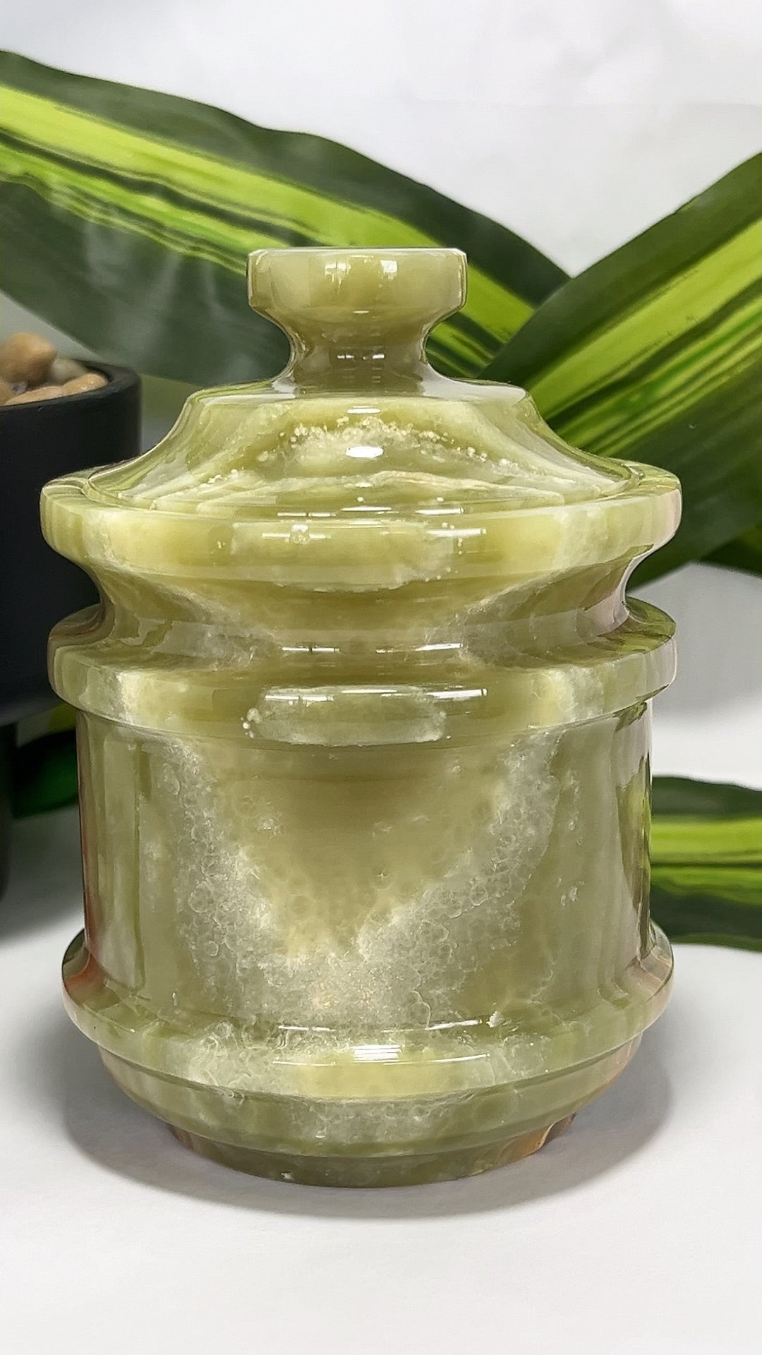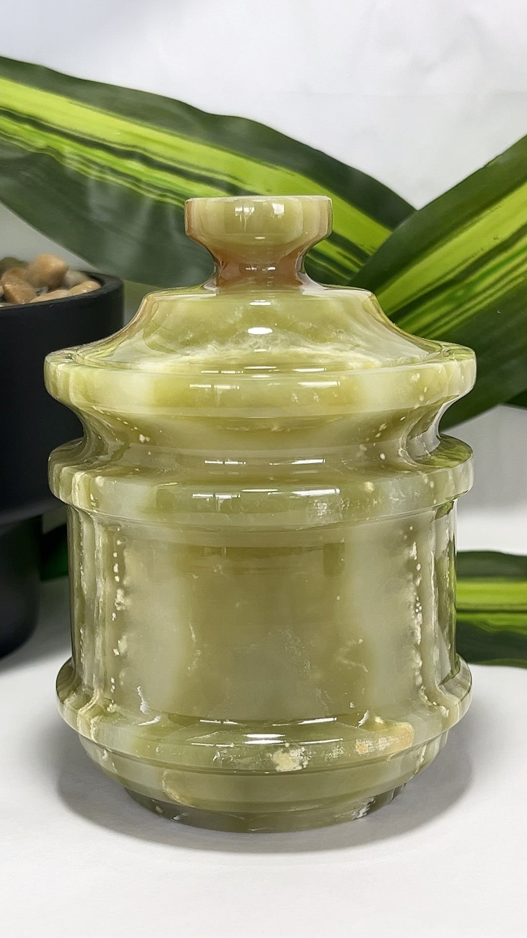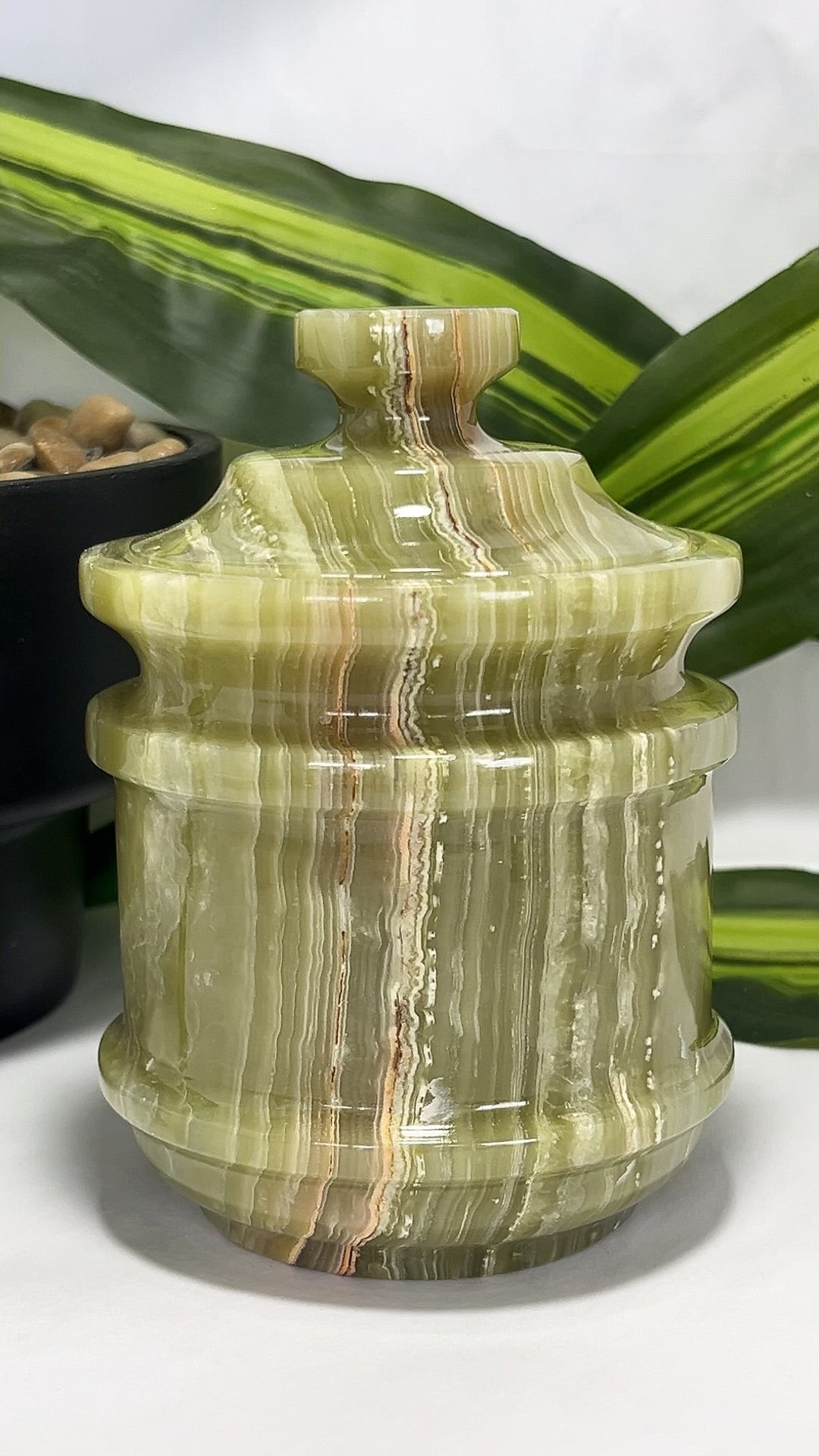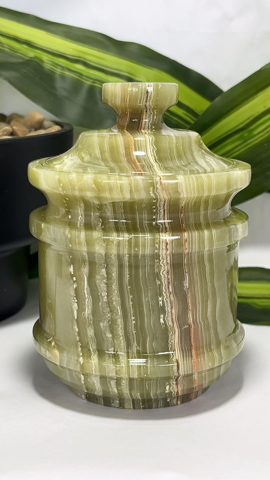 Green Banded Onyx Jar with Lid