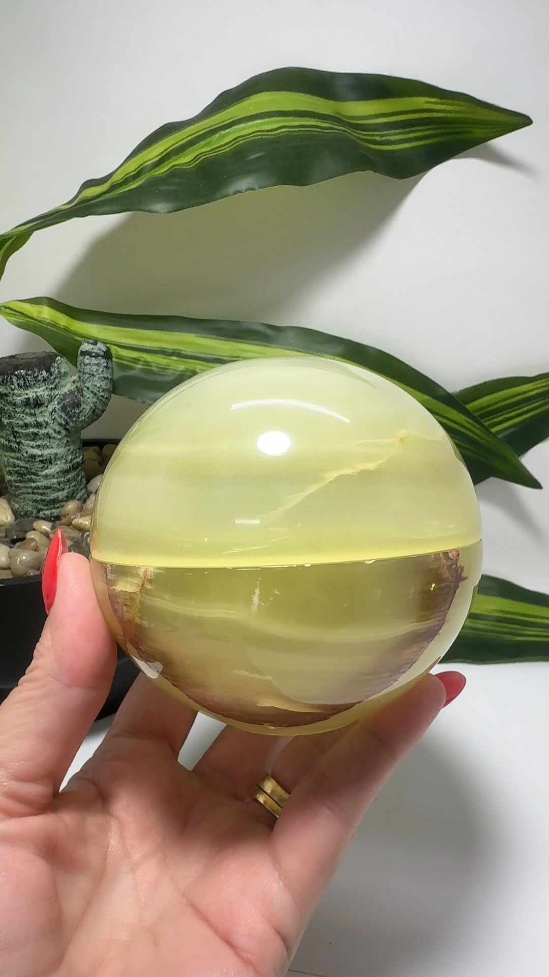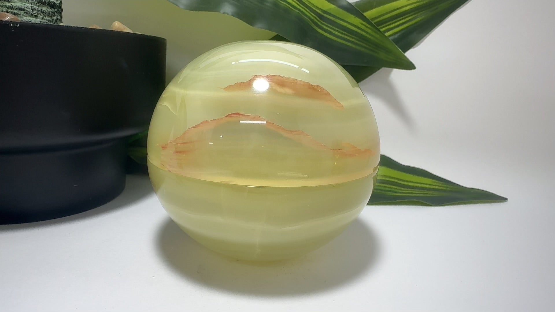 Green Banded Onyx Sphere bowl with Lid