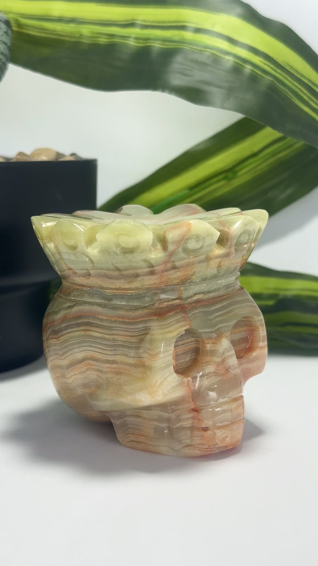 Home Crystal Carvings Green Banded Onyx Skull 758g