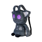 Gus Fink is known for his unique cute and creepy art. He believes everyone should embrace their weird and dark side! His art combines this with childlike charm, infusing it with light – like Skellbo! He has fluffy grey fur with big pointy ears, giant purple eyes, a wide toothy grin, a bone on his belly, and exposed ribs. Plus, it’s a backpack! Adorable with a touch of eerie, perfect for cuddles and carrying your goodies!