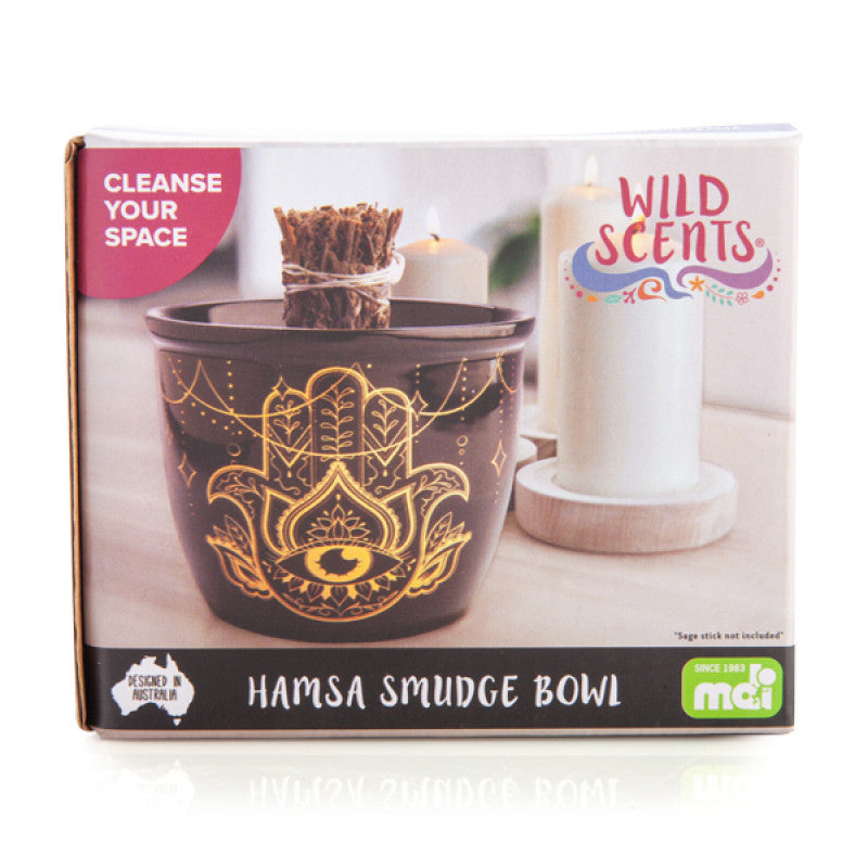 Perfect your cleansing ritual with a Wild Scents smudge bowl, made to safely burn, extinguish and display your sage, with a specially designed internal holder for burning sage. This charming bowl features the Hamsa symbol, worn throughout history to bless and bring strength to the wearer. Combined with the purifying sage, this smudge bowl is perfect for keeping your space free from negative energies and will empower you in all aspects of life.