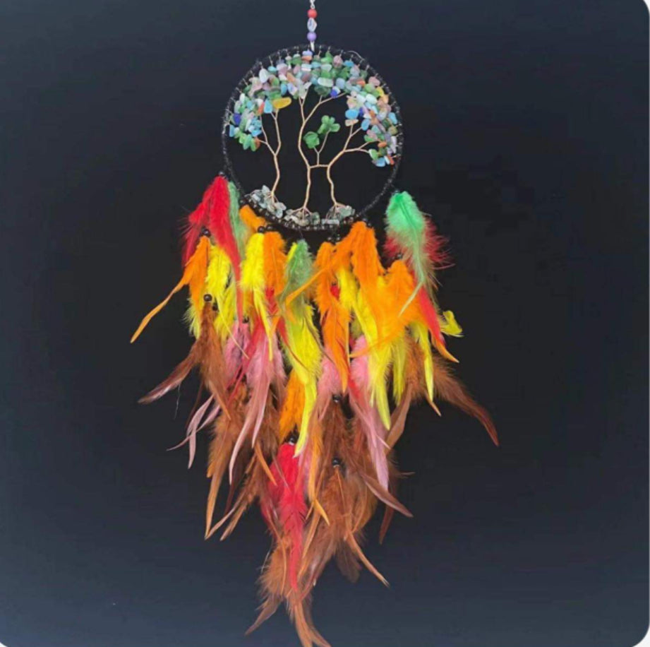 Beautiful vibrant dyed coloured feather dreamcatcher with assorted coloured crystal gems