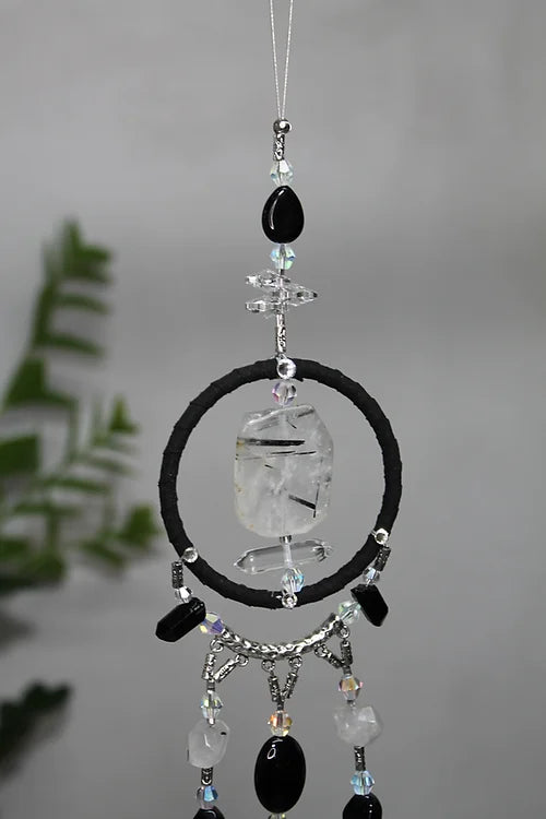 Obsidian & Tourmaline Quartz Ring Hanger Mandala app 40cm