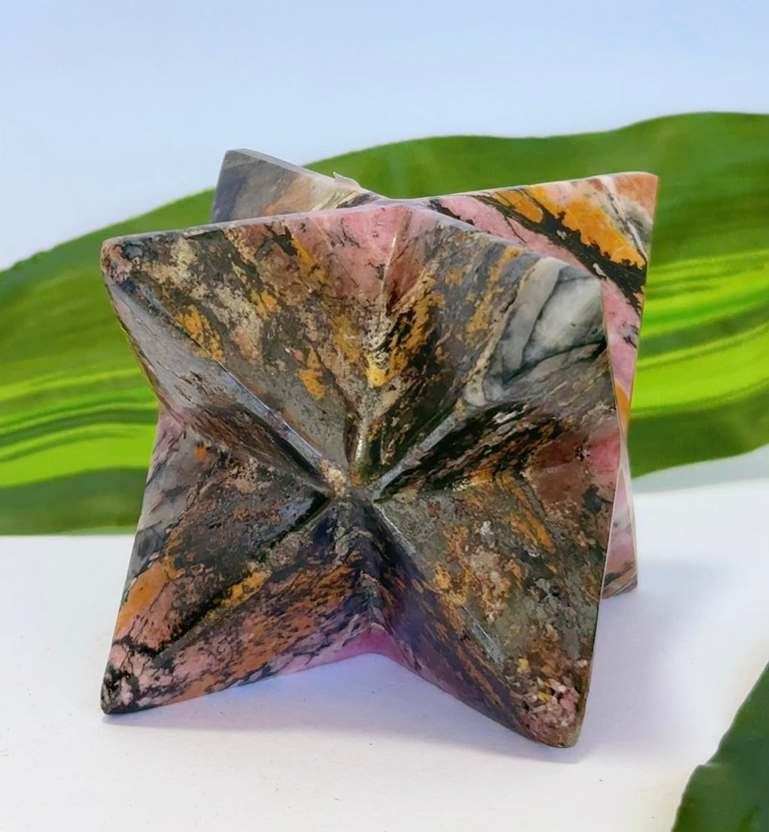 Category: Crystal Carvings Tag: Rhodonite Merkabah 336g