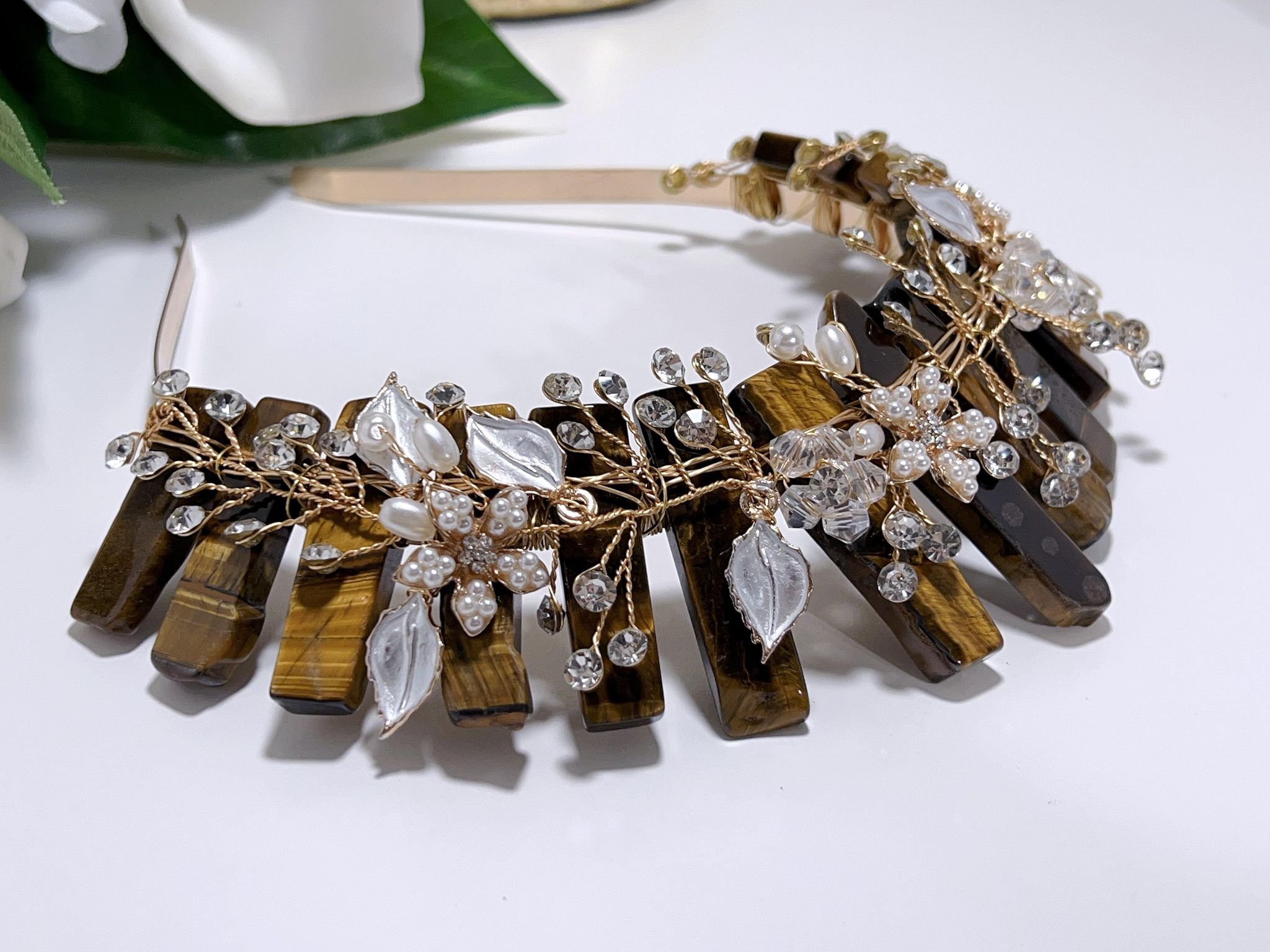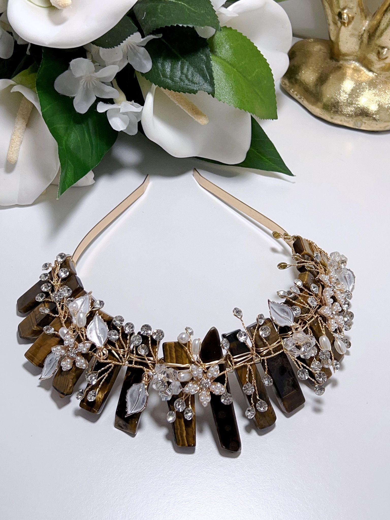 Home Jewellery🌀Tiaras Tiger Eye Flower Tiara Gold