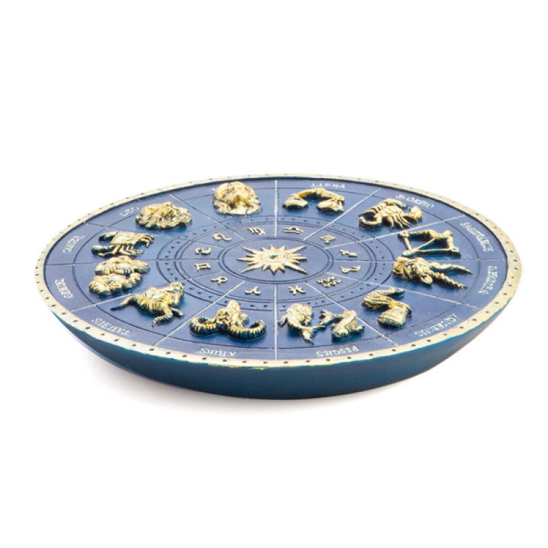 - Deep blue incense burner with a zodiac wheel design